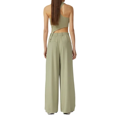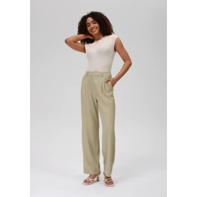 SMART WIDE-LEG WITH BUCKLE DETAIL - Trousers - mottled light brown